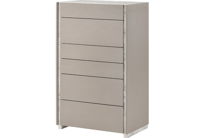 Introducing the Lydia Bedroom Set offers a sleek, contemporary design with its sophisticated matte grey finish. The case goods are highlighted with luxurious matte white marble veneer tops featuring elegant grey veining for a cohesive, modern aesthetic. The bed includes a built-in LED light for added ambiance, making it both stylish and functional. Transform your space with the Lydia Bedroom Set, where minimalism meets elegance.