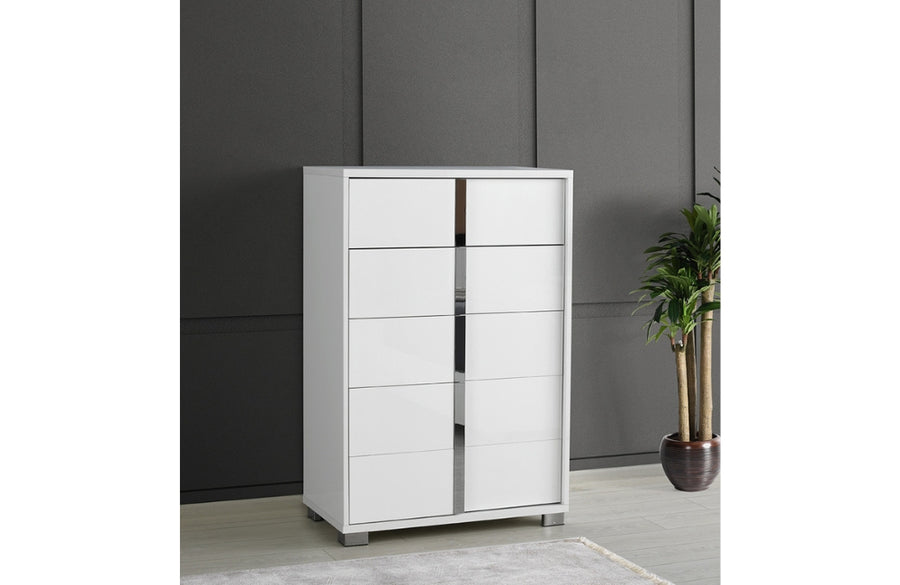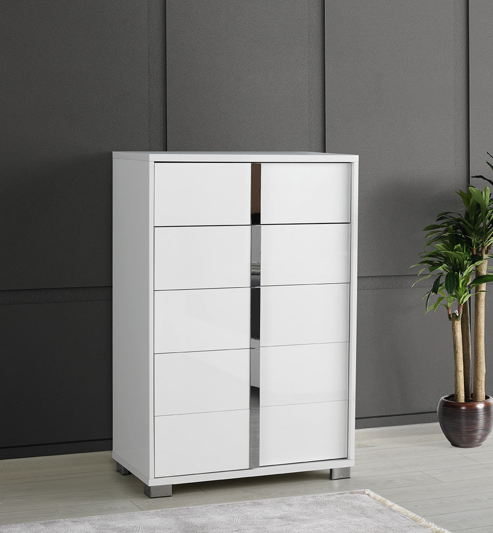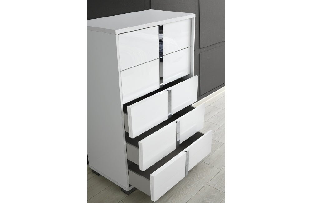 Sleek, modern, trendy, and durable are the traits of Giulia Bedroom collection.  This stylishly contemporary collection features sleek design elements like chrome drawer pulls that draw subtle attention. Additionally, Giulia is equipped with a modern LED light glow on the headboard. The collection features three magnetic colors: Gloss White, Gloss Pattern Grey, and Matte Gray Oak.