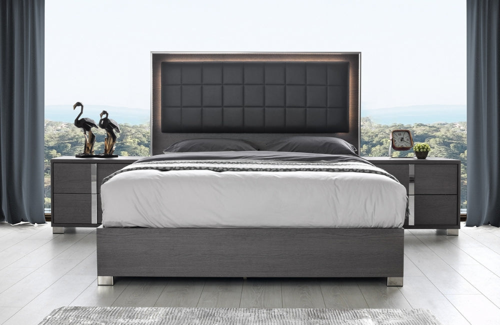 Sleek, modern, trendy, and durable are the traits of Giulia Bedroom collection.  This stylishly contemporary collection features sleek design elements like chrome drawer pulls that draw subtle attention. Additionally, Giulia is equipped with a modern LED light glow on the headboard. The collection features three magnetic colors: Gloss White, Gloss Pattern Grey, and Matte Gray Oak.