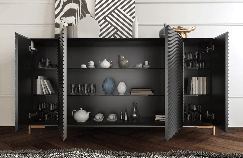 Contemporary interiors with a touch of ‘glamour’. The color and shape answers this very exigency without affecting the linear balance of the composition. Everything is wave shaped.